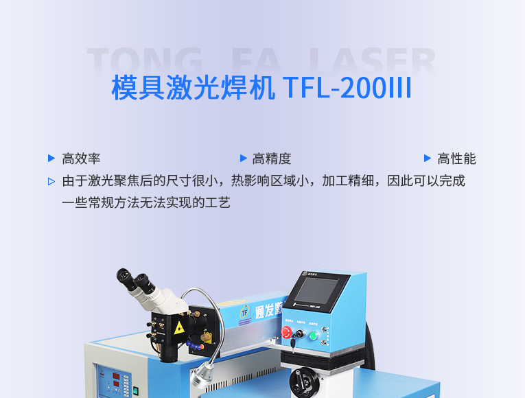 通發(fā)激光國(guó)內(nèi)率先推廣國(guó)產(chǎn)模具激光焊機(jī),TFL-200Ⅲ升級(jí)型世界500強(qiáng)選用,針對(duì)精密塑膠模具激光焊、鏡面塑膠模具激光燒焊、精密壓鑄模具激光焊補(bǔ).為國(guó)內(nèi)模具修復(fù)行業(yè)做出巨大貢獻(xiàn)。