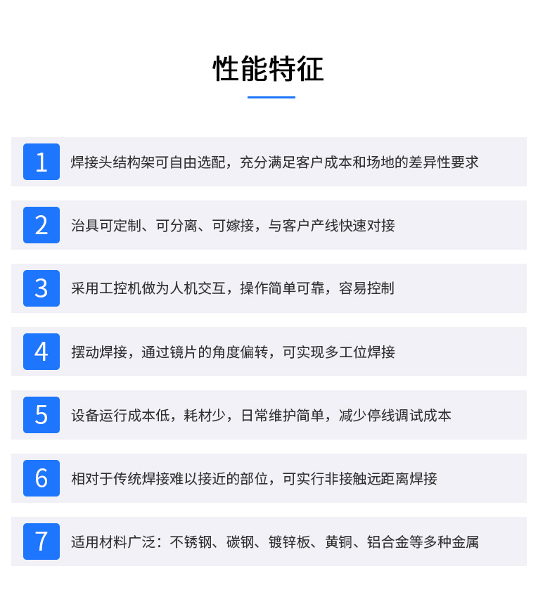加工頭:激光頭可實現±60度旋轉,效率高,可實現產品多角度焊接,適用性強。
